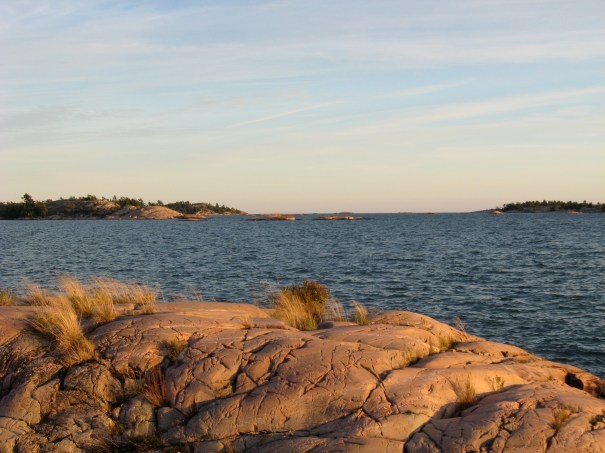 SUNSET LIGHTS UP ROCK ON PHILIP EDWARD ISLAND